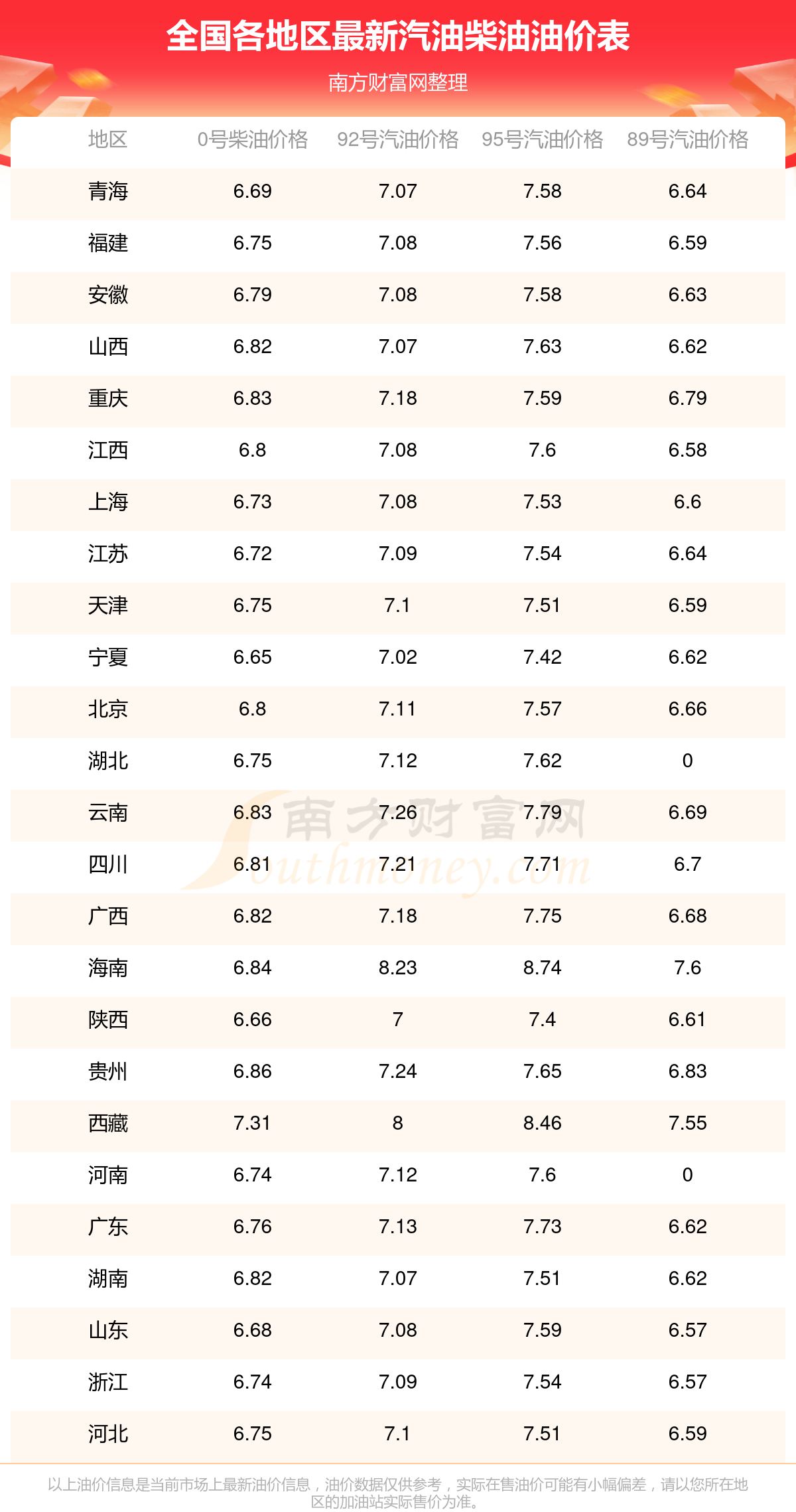 10月13日全国0号柴油每升的价格:调整时刻为8月27日,均匀价格为7元/升,最低的是宁夏,价格6.65元/升,最高的是西藏,价格7.31元/升。